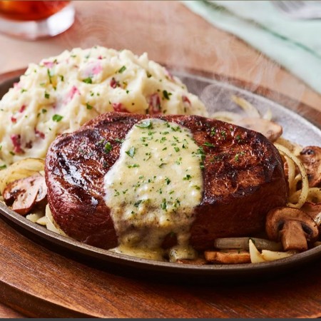 Turn up the heat with our Sizzlin' Skillets! Savor our fan-favorites: the mouthwatering Bourbon Street Chicken & Shrimp, the flavorful Bourbon Street Steak, or the Hot Honey Glazed Chicken & Bacon Skillet.