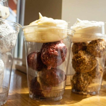 Your favorite Donut Hole Flavor with your choice of Dip