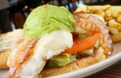 Fresh ground, never frozen steak burgers. Burgers are prepared medium, medium-well, or well done. Served with a pickle spear and fries. Add a side salad for $2.59